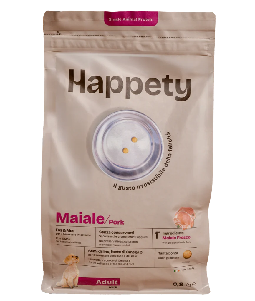 Complete dry food for adult dogs of small breeds Rich in fresh pork Rich in rice With LIPIDOL – helps improve nutrient digestibility With Inulin (0.3%) and MOS (0.2%)