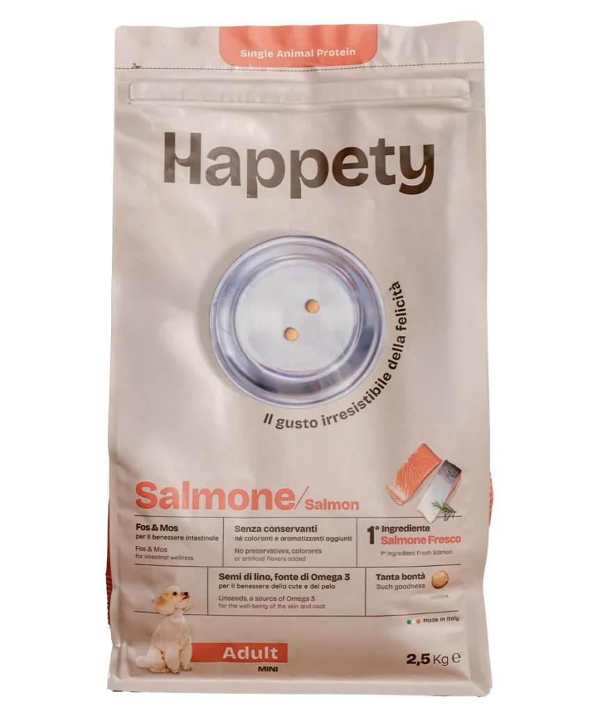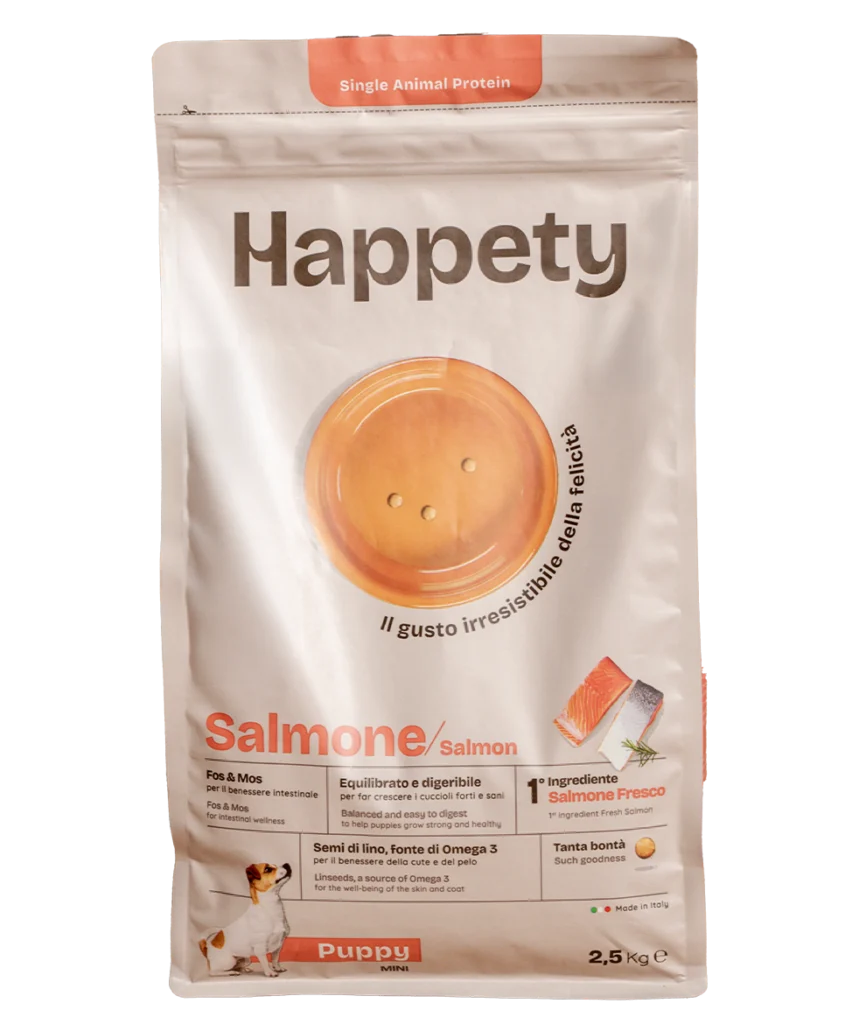Complete dry food for ouppy of small sizes rich in fresh salmon Rich in fresh salmon Rich in rice With LIPIDOL – helps improve nutrient digestibility With Inulin (0.3%) and MOS (0.2%)
