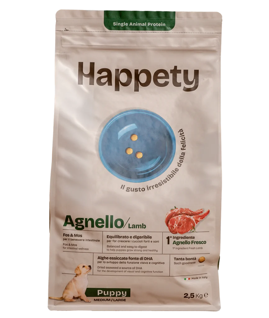 Complete dry food for puppy of medium-large sizes rich in fresh lamb Rich in fresh Lamb Rich in rice With LIPIDOL – helps improve nutrient digestibility With Inulin (0.3%) and MOS (0.2%)