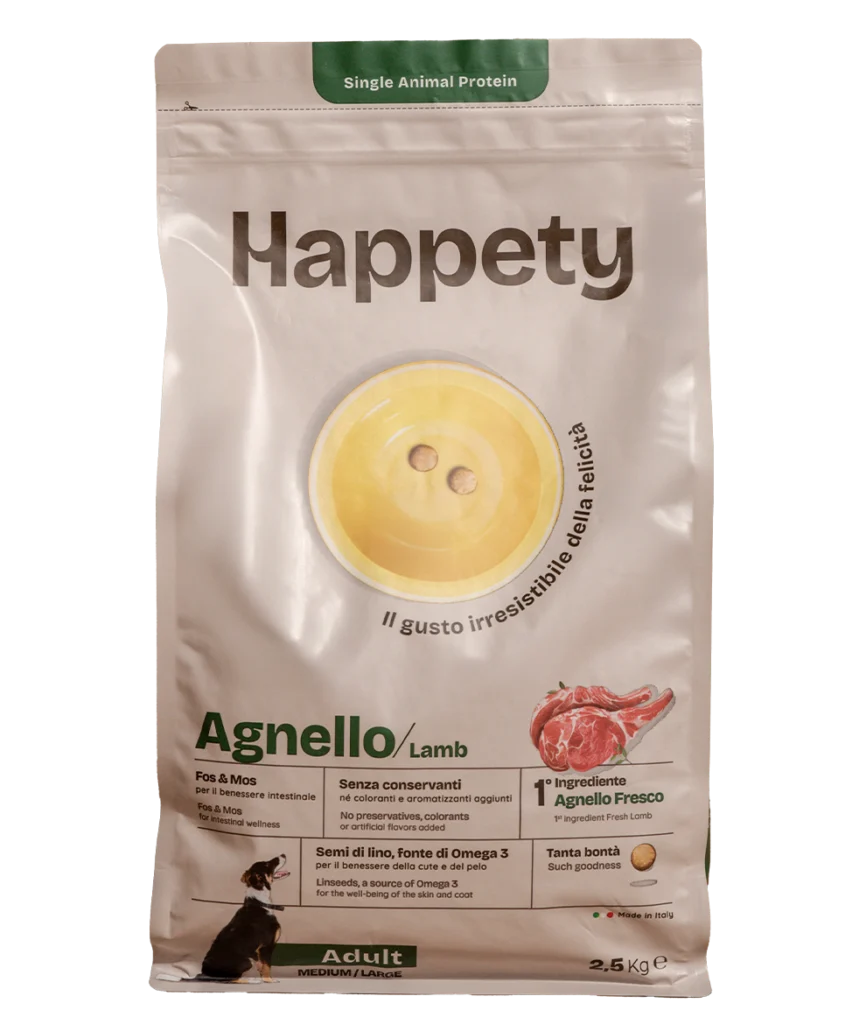 Complete dry food for adult dogs of medium-large sizes rich in fresh Lamb Rich in fresh Lamb Rich in rice With LIPIDOL – helps improve nutrient digestibility With Inulin (0.3%) and MOS (0.2%)