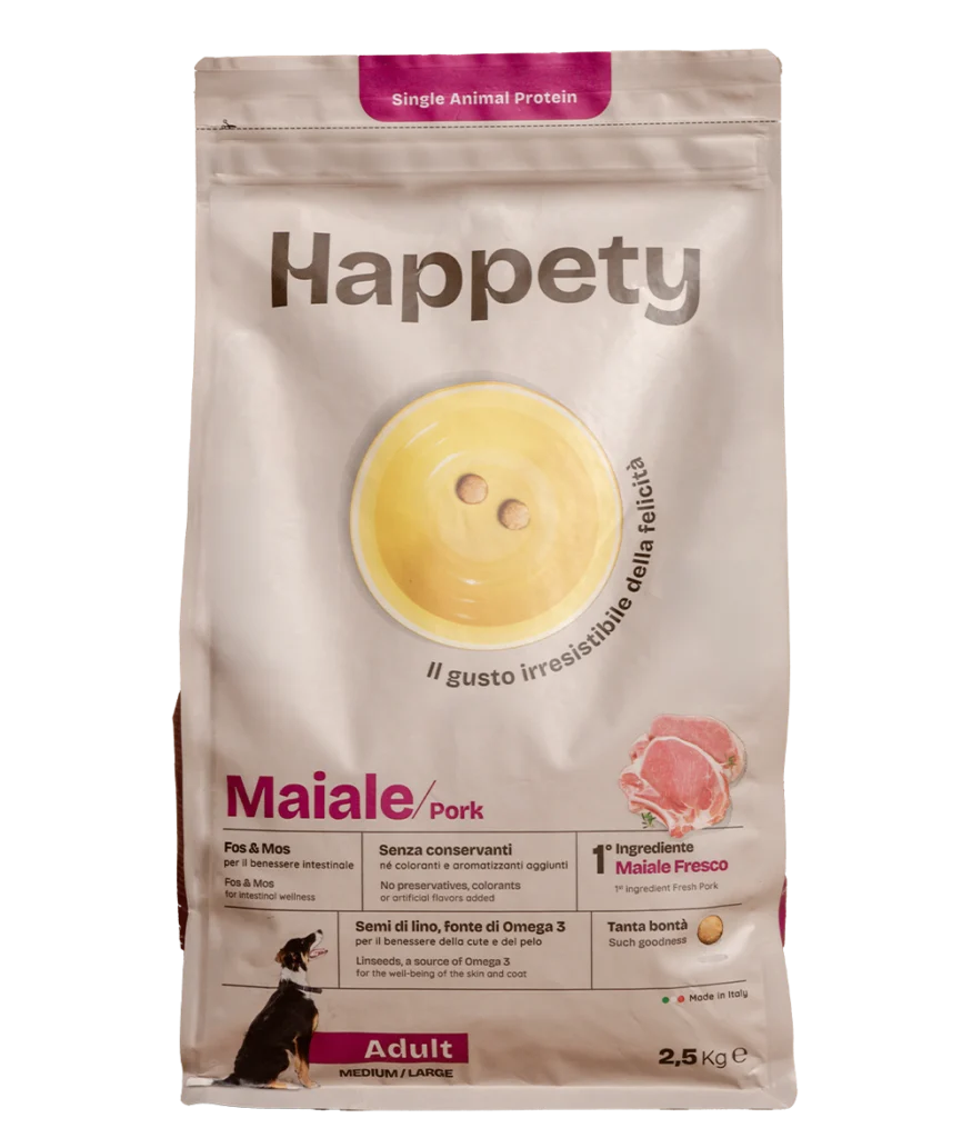 Complete dry food for adult dogs of medium-large sizes rich in fresh Pork Rich in fresh Pork Rich in rice With LIPIDOL – helps improve nutrient digestibility With Inulin (0.3%) and MOS (0.2%)