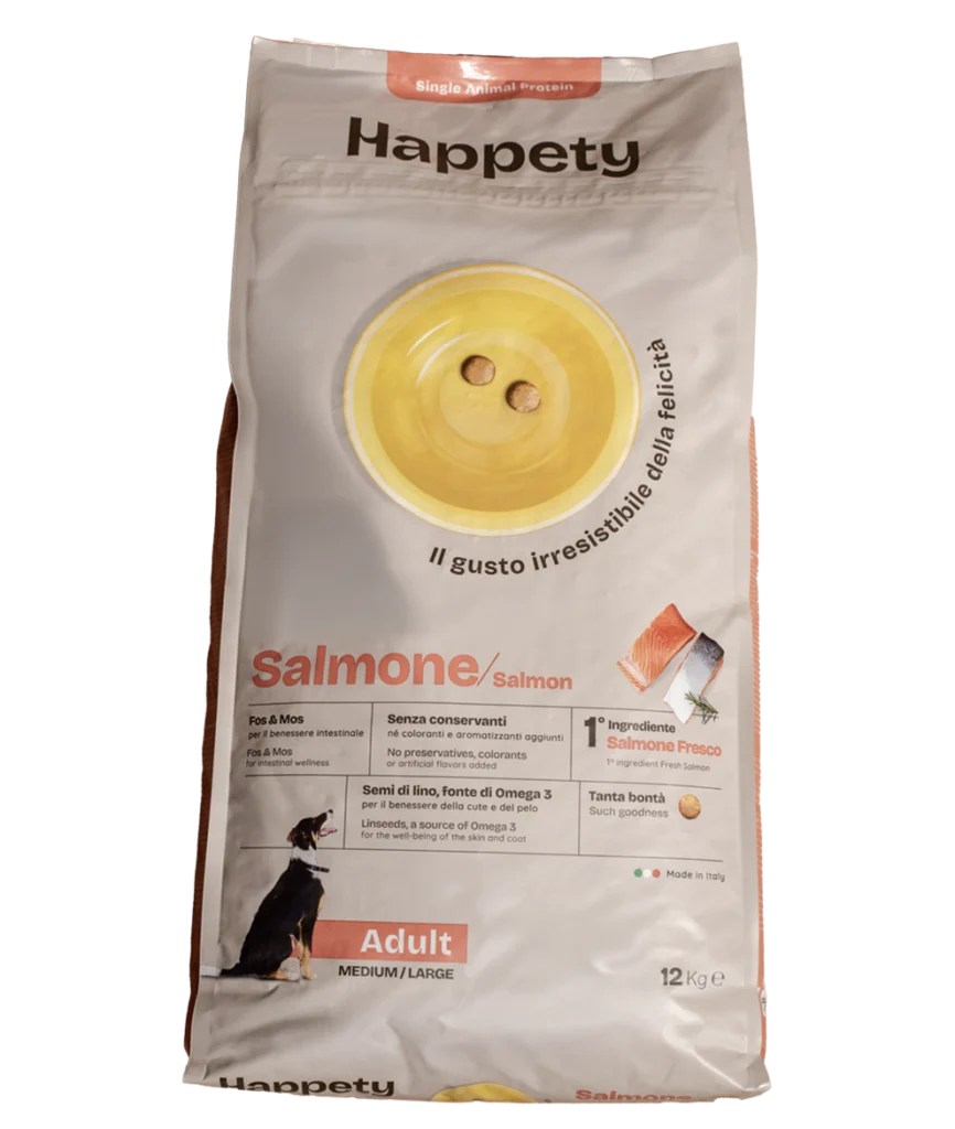 Complete dry food for adult dogs of medium-large sizes rich in Fresh Salmon Rich in fresh salmon Rich in rice With LIPIDOL – helps improve nutrient digestibility With Inulin (0.3%) and MOS (0.2%)