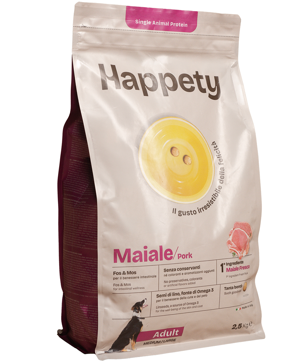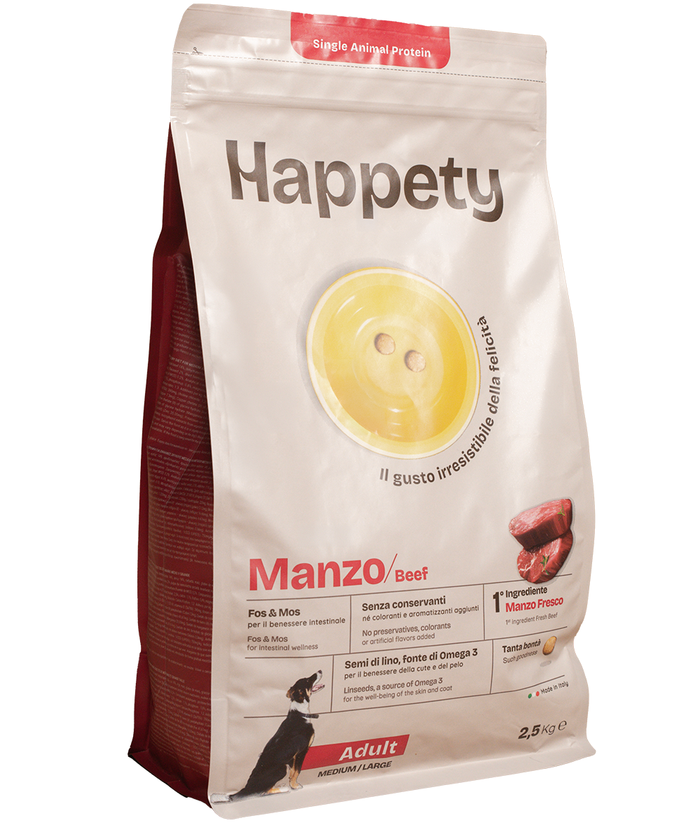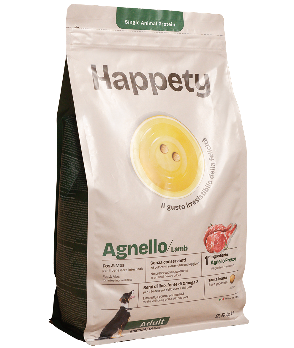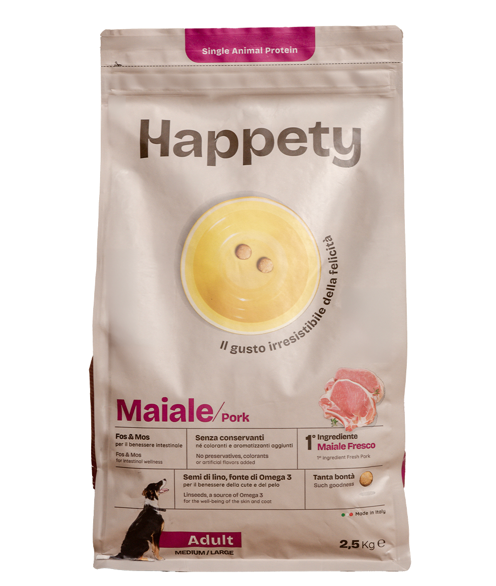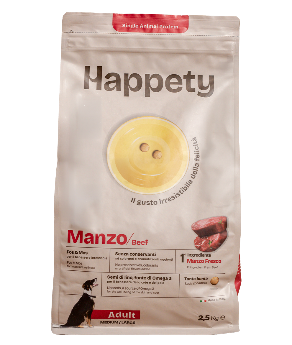 Serve the food as it is or slightly moistened with lukewarm water. The amounts given in the table are approximate and may vary depending on the dog’s lifestyle, activity level and climate. Always leave fresh, clean water available. If the food is being served for the first time, introduce it gradually by mixing it with the previous food. Store in a cool, dry place. Expiry date/lot/establishment no.: see packaging. Close again after opening.